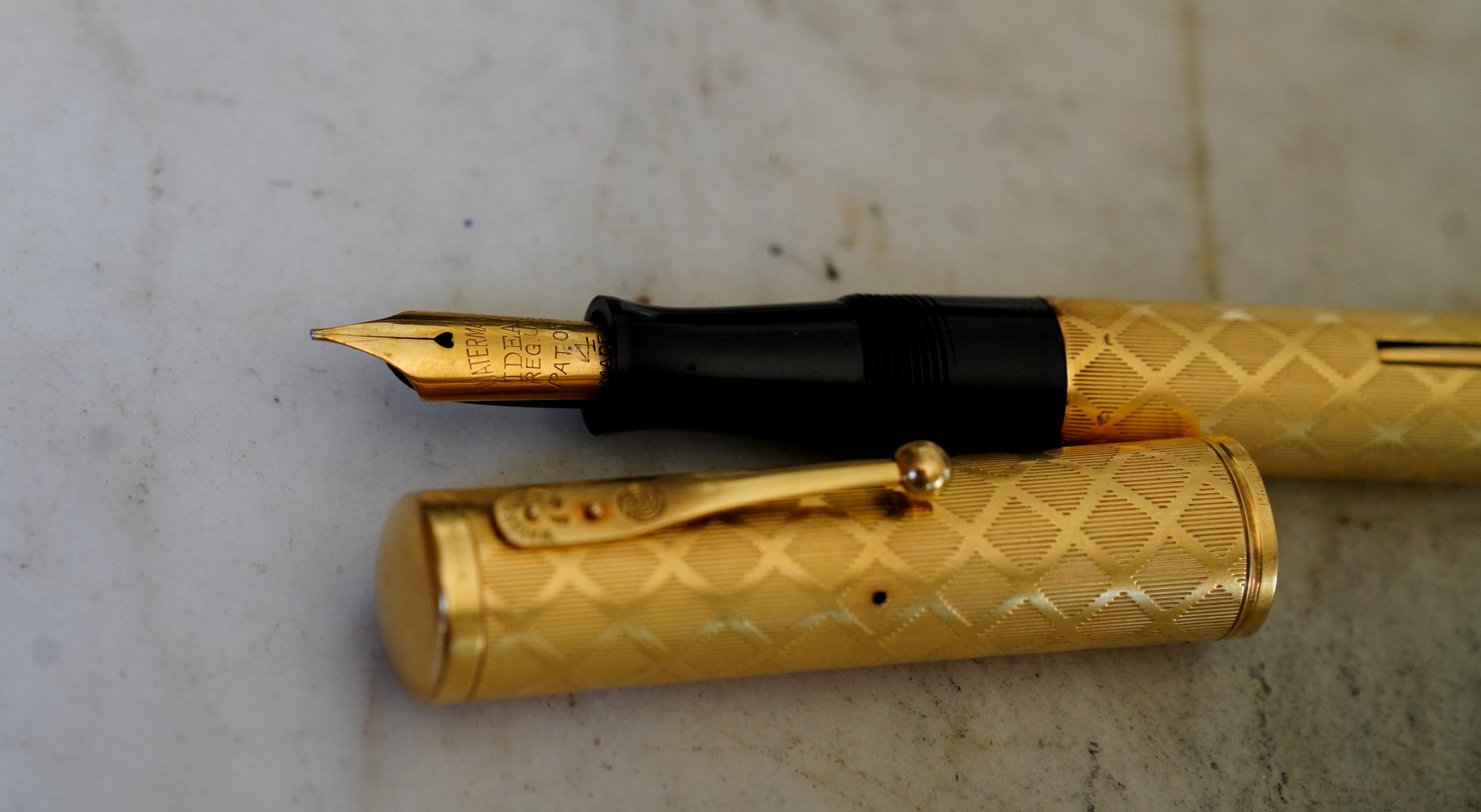 Le haut du capuchon est gravé de la mention / Waterman’s – Or 18 Cts /