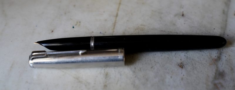 / PARKER 51 SPECIAL – TO FILL PRESS RIBBED BAR FOUR TIMES – WIPE FRONT END,