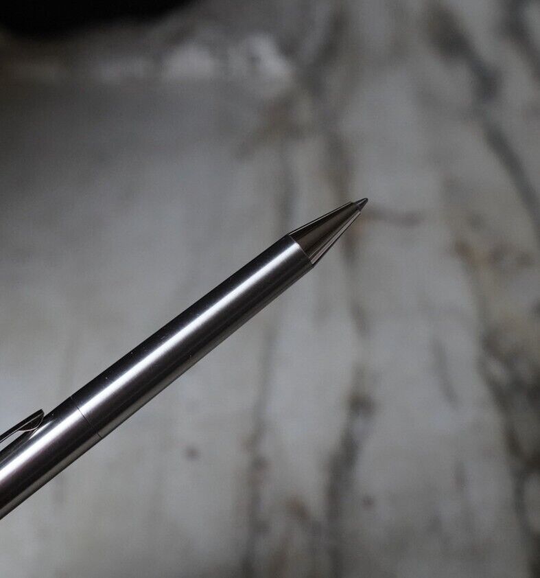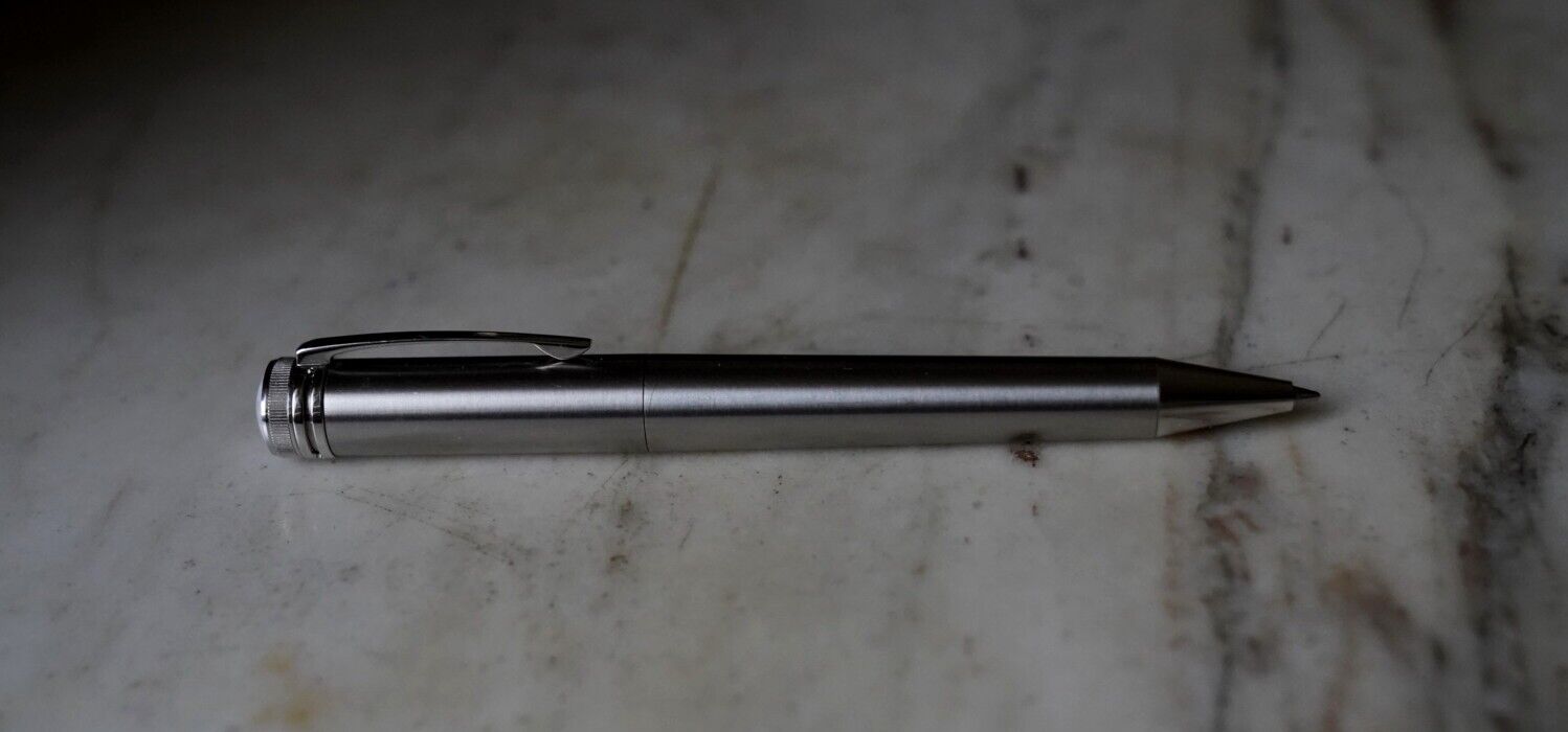 La ligne de ce stylo est très épurée, sans bague centrale, ce qui lui confère une allure élégante et minimaliste. Les attributs en métal sont plaqués platine, ajoutant une touche de sophistication à l’ensemble.