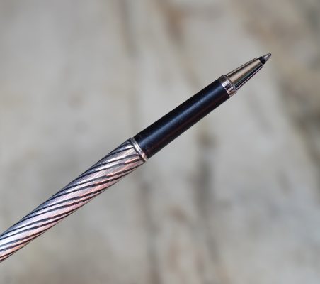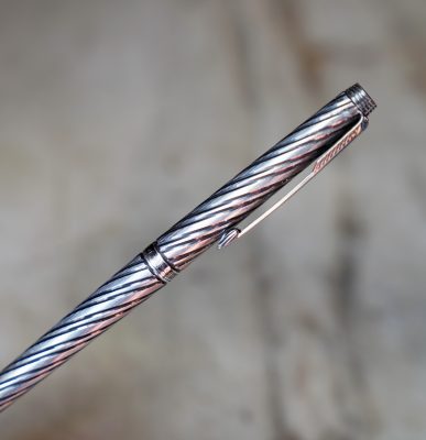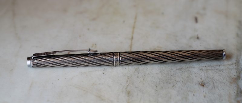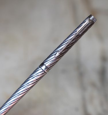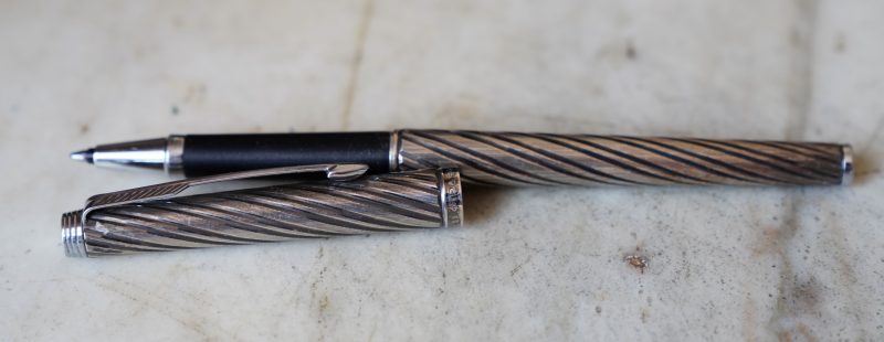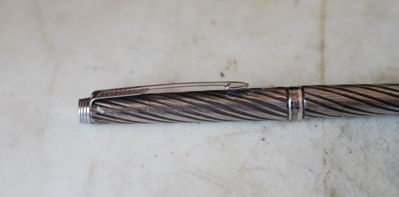 STYLO ROLLER PARKER 180 EN METAL PL. ARGENT FINITION TORSADEE