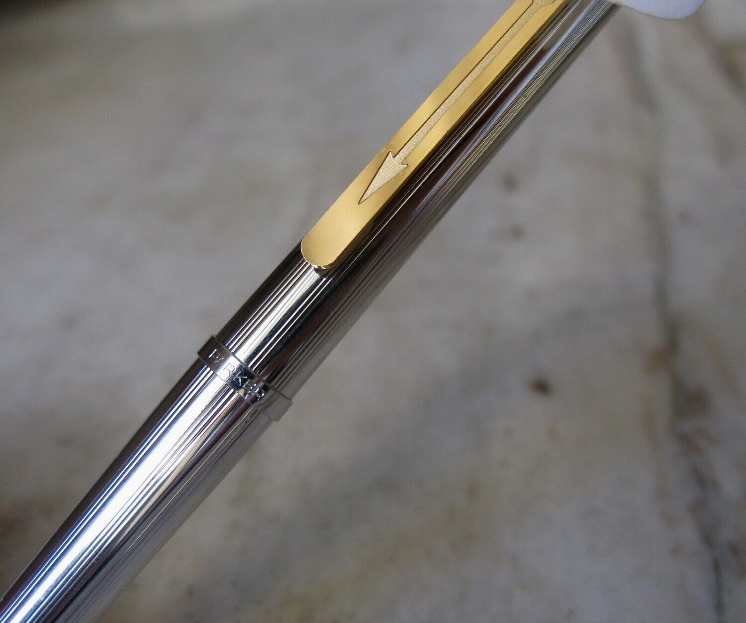 Stylo roller Parker 85 Florence, finition chromée. (modèle introuvable dans cette finition) sur la bague du stylo est inscrite la mention suivante « PARKER – France »