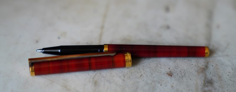 Magnifique stylo Roller réalisé en Laque de Chine boisée, motif annelé